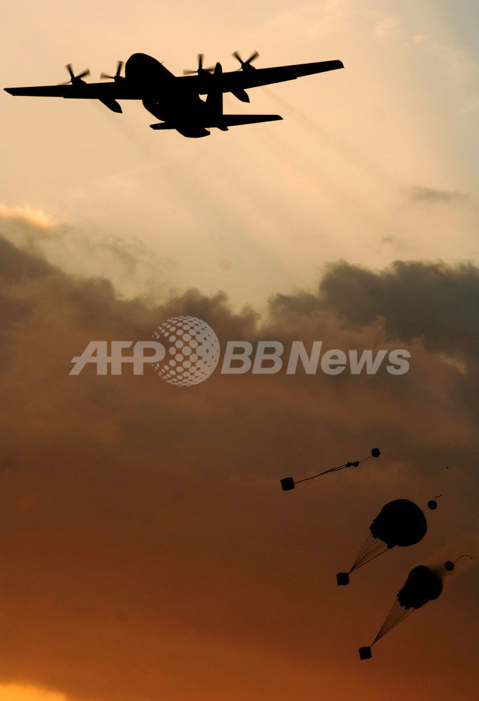 【エルサレム/イスラエル 22日 AFP】地元紙ハーレツ(Haaretz)は22日、シリア軍部隊がゴラン高原(Golan Heights)のイスラエル境界付近に接近している模様だと一面で報じた。また、シリアがかつてない規模で軍備増強を図っていると報じた。ゴラン高原は、1967年の第3次中東戦争でイスラエルがシリアから占領した地域。写真はゴラン高原で21日、軍事演習の一環として「援助物資」を投下するイスラエルの軍用機。(c)AFP/IDF/ABIR SULTAN