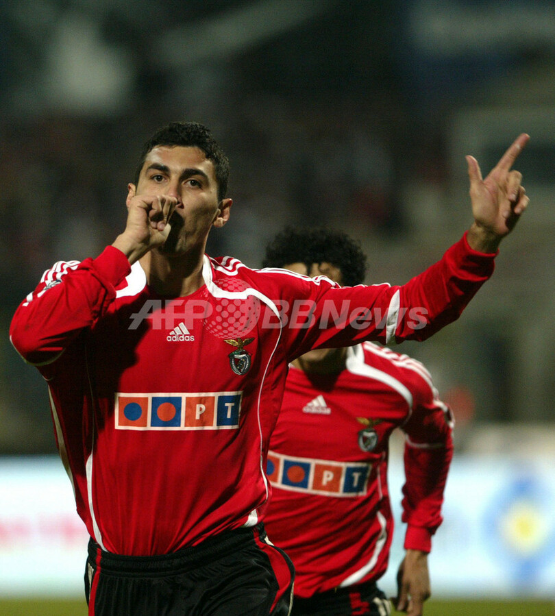 【ブカレスト/ルーマニア 22日 AFP】サッカー、UEFA杯(UEFA Cup)・決勝トーナメント1回戦、ディナモ・ブカレスト(Dinamo Bucharest)vsベンフィカ(Benfica)、第2戦。試合はベンフィカが2-1で勝利し、2戦合計スコアを3-1として2回戦進出を決めた。写真は、後半5分に同点ゴールを決めて歓喜するベンフィカのアンデルソン(Anderson)。(c)AFP/DANIEL MIHAILESCU