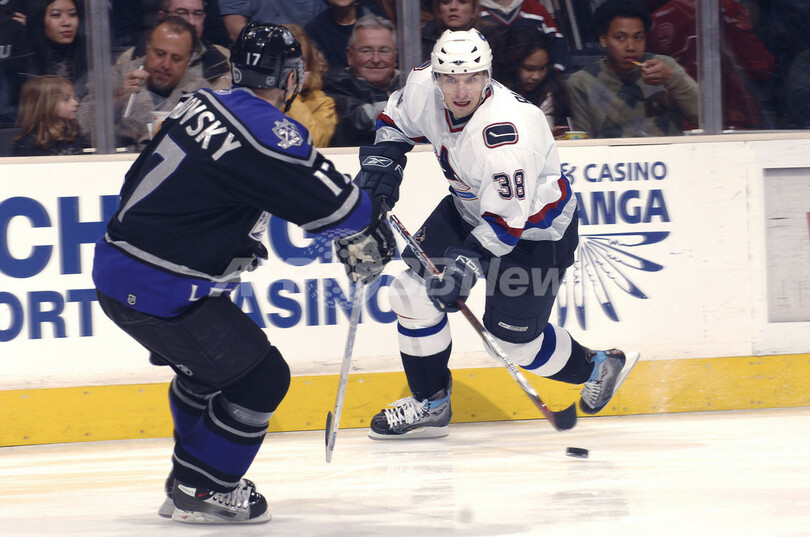 【ロサンゼルス/米国 22日 AFP】06-07NHL、ロサンゼルス・キングス(Los Angeles Kings)vsバンクーバー・カナックス(Vancouver Canucks)。カナックスのゴーリー、ロベルト・ルオンゴ(Roberto Luongo)は31セーブを記録し、この試合のファーストスターに選出された。試合は3-2でカナックスが勝利を収め、6連勝で今季36勝目を挙げた。(c)AFP/Getty Images Andrew D. Bernstein