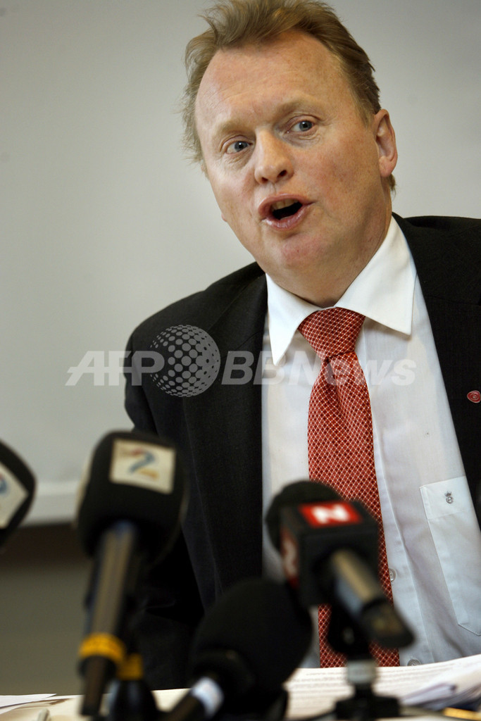 【オスロ/ノルウェー 23日 AFP】オスロ(Oslo)で開催されていたクラスター爆弾禁止国際会議(Oslo Conference on Cluster Munitions)が23日、禁止条約の必要性を訴える共同宣言を採択して閉幕した。同会議の開催国ノルウェーによると、共同宣言には参加国全49か国中46か国が賛成、日本、ポーランドおよびルーマニアが反対した。クラスター爆弾は、数百個の小型爆弾を内包し、空中で分解後、広範囲に爆弾を投下する兵器。同会議に米国とイスラエルは参加していない。写真は会議終了後、記者会見を行うノルウェーのRaymond Johansen外務副大臣。(c)AFP/SCANPIX/Jarl Fr.Erichsen