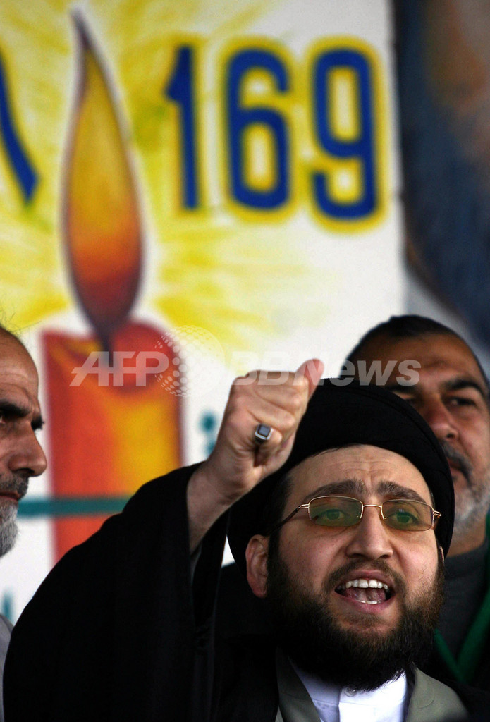 写真はバスラ(Basra)で演説を行うハキム氏(2005年1月18日撮影)。(c)AFP/ESSAM AL-SUDANI