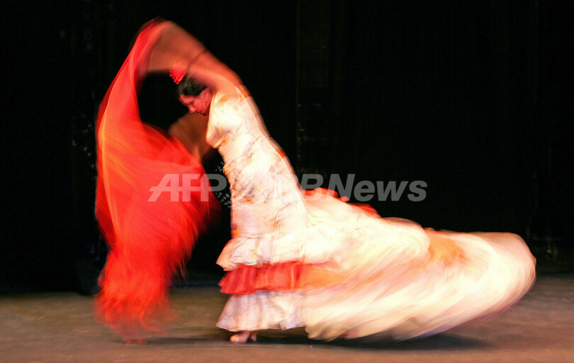 【ロンドン/英国 24日 AFP】サドラーズウェルズ劇場(Sadler’s Wells Theatre)で2月23日から3月3日までロンドン・フラメンコ・フェスティバル(Flamenco Festival London)が開催される。4回目を迎える今年は有名スペイン人フラメンコダンサー、エバ・ジェルバブエナ(Eva Yerbabuena)が23日から25日まで上演を行う。写真は23日、プレス向けのプレビューでパフォーマンスを披露するエバ・ジェルバブエナ。(c)AFP/CARL DE SOUZA