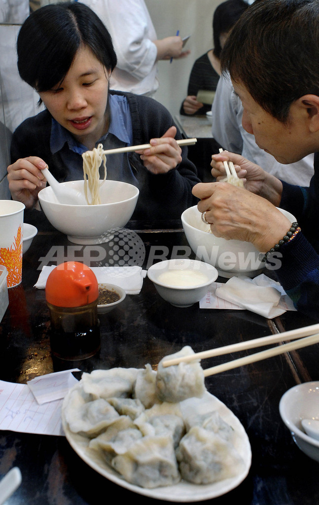 写真は、香港市内のレストランで食事する人々(2006年3月22日撮影)。(c)AFP/PHILIPPE LOPEZ