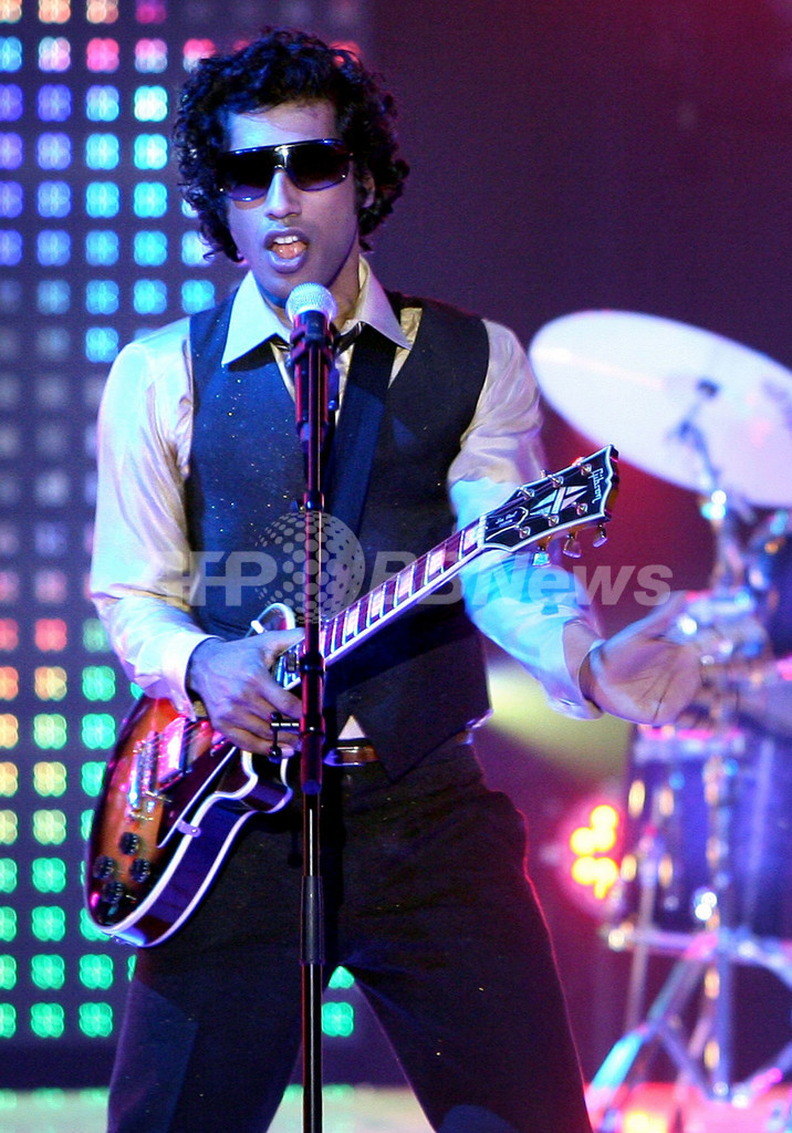 【リエージュ/ベルギー 24日 AFP】5月にヘルシンキで開催される、第52回ユーロビジョン・ソング・コンテスト(2007 Eurovision Song Contest)のベルギー代表に選ばれたグループ、The KMG’s(Krazy Mess Groovers)が22日。テレビ局RTBFの番組「Bonnie & Clyde」に出演した。写真は同グループのリードシンガー、セクシーファイア(Sexyfire)。(c)AFP/MICHEL KRAKOWSKI/BELGA