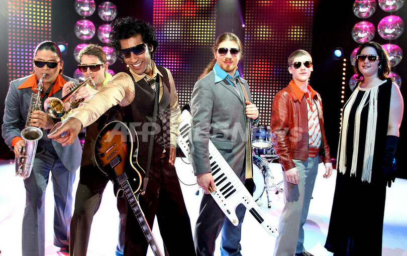 【リエージュ/ベルギー 24日 AFP】5月にヘルシンキで開催される、第52回ユーロビジョン・ソング・コンテスト(2007 Eurovision Song Contest)のベルギー代表に選ばれたグループ、The KMG’s(Krazy Mess Groovers)が22日。テレビ局RTBFの番組「Bonnie & Clyde」に出演した。写真は同グループのリードシンガー、セクシーファイア(Sexyfire)。(c)AFP/MICHEL KRAKOWSKI/BELGA