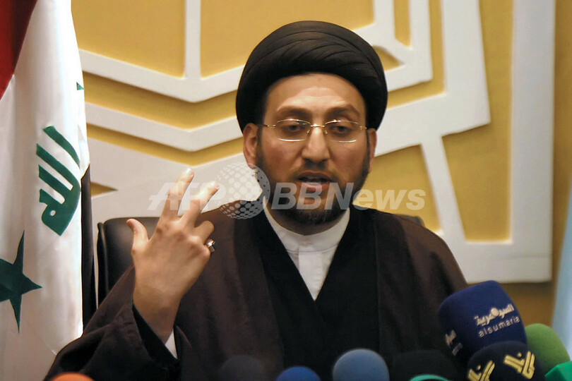 【ナジャフ/イラク 25日 AFP】駐留米軍に身柄を拘束されたイスラム教シーア派(Shiite)政党「イラク・イスラム革命最高評議会(SCIRI)」の指導者アブドルアジズ・ハキム(Abdel Aziz al-Hakim)師の息子、アンマル・ハキム(Ammar al-Hakim)氏は24日、ナジャフで(Najaf)記者会見を行い、自身に対する米軍の取り扱いについて非難した。米国側は同氏の取り扱いについて、敬意を持って待遇したと述べている。また、あくまで通常の国境警備中に拘束したのであり、ハキム氏を狙った訳ではないと主張している。写真は、記者会見を行うハキム氏。(c)AFP/QASSEM ZEIN