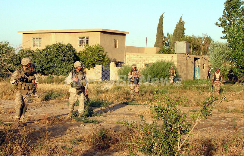 写真は、ハバニヤでイラク軍兵士と共にパトロールする米海兵隊員(2006年6月11日)。(c)AFP/THIBAULD MALTERRE
