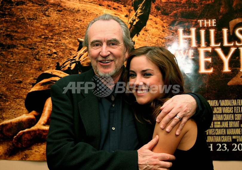 写真は(左から)、脚本のジョナサン・クレイヴン(Jonathan Craven)、女優のダニエラ・アロンソ(Daniella Alonso)、プロデューサーのウェス・クレイヴン、女優のジェシカ・ストロープ(Jessica Stroup)。(c)AFP/Getty Images Donald Bowers