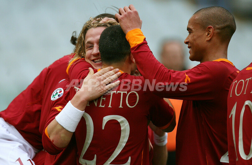 スポーツ サッカー <サッカー セリエA>ローマ 3得点を挙げてレッジーナに快勝 - イタリア 2007年2月26日 1:17 発信地:イタリア [ ヨーロッパ イタリア ] このニュースをシェア ‹ › ❮ 15/16 ❯ 写真は、後半20分にチーム2点目のゴールを決めてチームメイトからの祝福を受けるローマのフィリップ・メクセス(%%Philippe Mexes%%)。(c)AFP/ANDREAS SOLARO 画像作成中 ! 【ローマ/イタリア 25日 AFP】サッカー、イタリア・セリエA・第25節、ASローマ(AS Roma)vsレッジーナ(Reggina Calcio)。試合はローマが3-0でレッジーナに快勝し、今季16勝目を挙げた。写真は、試合終了間際にチーム3点目のゴールを決めて喜ぶローマのクリスティアン・パヌッチ(Christian Panucci)。(c)AFP/ANDREAS SOLARO サッカー 一覧へ> メディア・報道関係・法人の方向け 写真・動画 購入のお問合せ>
