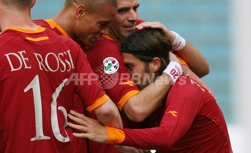 スポーツ サッカー <サッカー セリエA>ローマ 3得点を挙げてレッジーナに快勝 - イタリア 2007年2月26日 1:17 発信地:イタリア [ ヨーロッパ イタリア ] このニュースをシェア ‹ › ❮ 9/16 ❯ 写真は、後半9分に先制ゴールを決めてチームメイトからの祝福を受けるローマのフランチェスコ・タバーノ(%%Francesco Tavano%%)。(c)AFP/ANDREAS SOLARO 画像作成中 ! 【ローマ/イタリア 25日 AFP】サッカー、イタリア・セリエA・第25節、ASローマ(AS Roma)vsレッジーナ(Reggina Calcio)。試合はローマが3-0でレッジーナに快勝し、今季16勝目を挙げた。写真は、試合終了間際にチーム3点目のゴールを決めて喜ぶローマのクリスティアン・パヌッチ(Christian Panucci)。(c)AFP/ANDREAS SOLARO サッカー 一覧へ> メディア・報道関係・法人の方向け 写真・動画 購入のお問合せ>