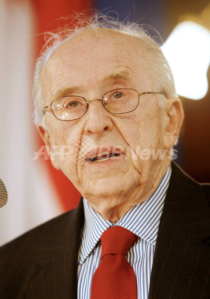 【ウィーン/オーストリア 27日 AFP】ウィーン国際映画祭(Viennale)の会長で米映画配給/製作会社ユナイテッド・アーティスツ(United Artists、略称:UA)の元社長エリック・プレスコー(Eric Pleskow)氏が26日、Michael Heupel市長より名誉市民権を授与された。写真はMichael Heupelとポーズをとるエリック・プレスコー氏(右)。(c)AFP/DIETER NAGL