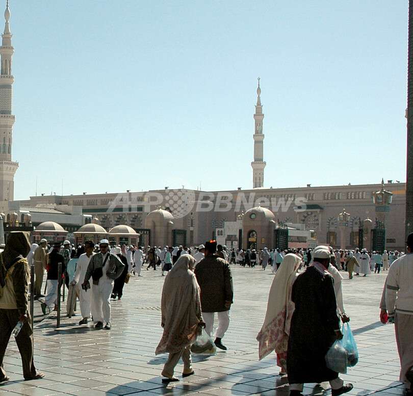 写真はMedinaのモスクの前の人だかり。(c)AFP