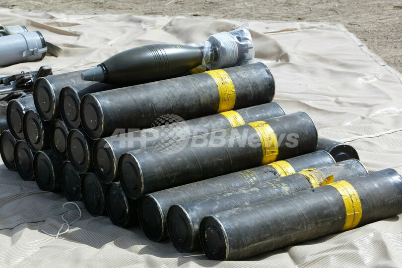 【バグダッド/イラク 27日 AFP】駐イラク米軍は24日、バグダッド北方25キロのシーア派の村Jadidahで保管されていた徹甲爆弾など、大量の爆発物や製作用部品を発見した。米軍高官が26日、公表した。多くはイランから密輸されたものとみられる。米軍指揮官らは、イラン政府による直接関与の追及は難しいが、兵器のほとんどは明らかにイラン製であると語った。写真は26日に公開された迫撃砲。(c)AFP/ALI AL-SAADI