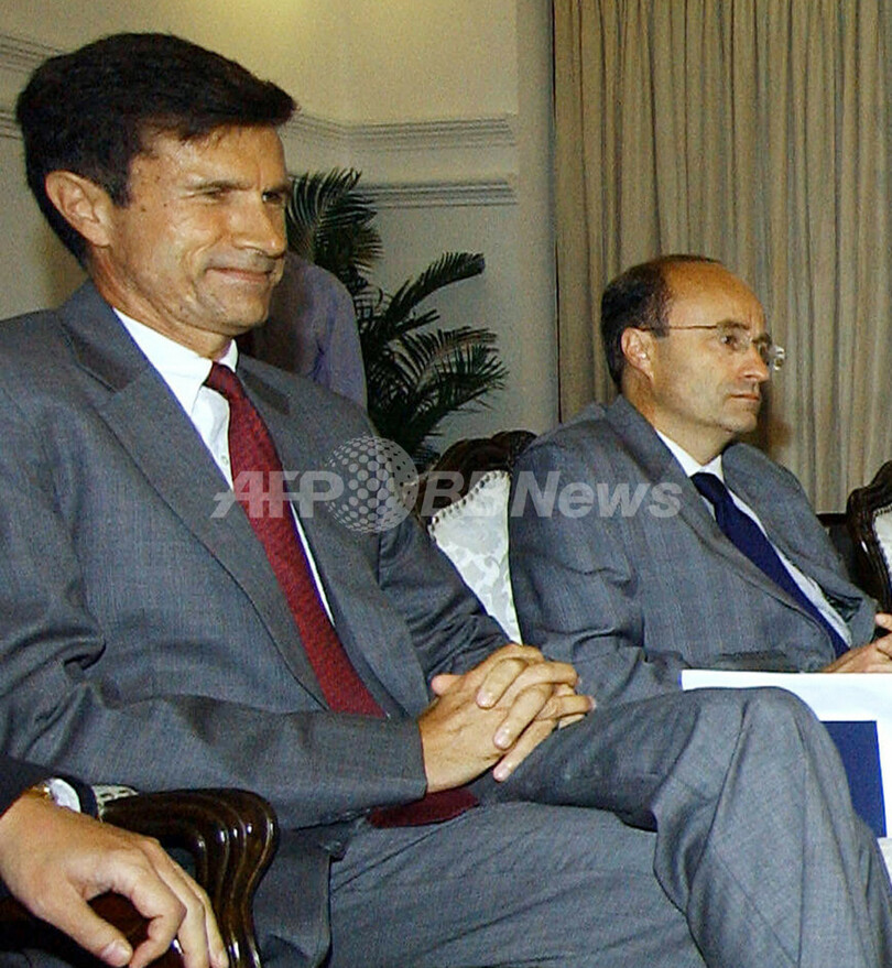 写真は、負傷した米国のロバート・ブレーク(Robert Blake)大使(左)。2006年10月9日、コロンボ(Colombo)の和平協議でノルウェーのHans Brattskar大使と。(c)AFP/Sanka VIDANAGAMA