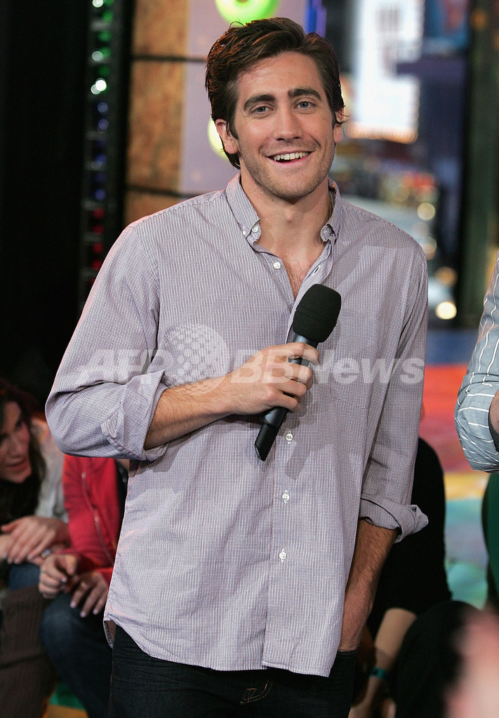 【ニューヨーク/米国 28日 AFP】俳優のジェイク・ギレンホール(Jake Gyllenhaal)が27日、MTVタイムズ・スクウェア・スタジオ(MTV Times Square Studios)で行われた音楽専門チャンネルMTVの人気音楽情報番組「Total Request Live」の生放送に登場し、3月2日から米国で公開予定の出演映画、「Zodiac」のプロモーションを行った。(c)AFP/Getty Images Peter Kramer