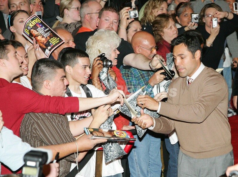 <ボクシング>デラホーヤ メイウェザー・ジュニアと共に会見を行う - 米国