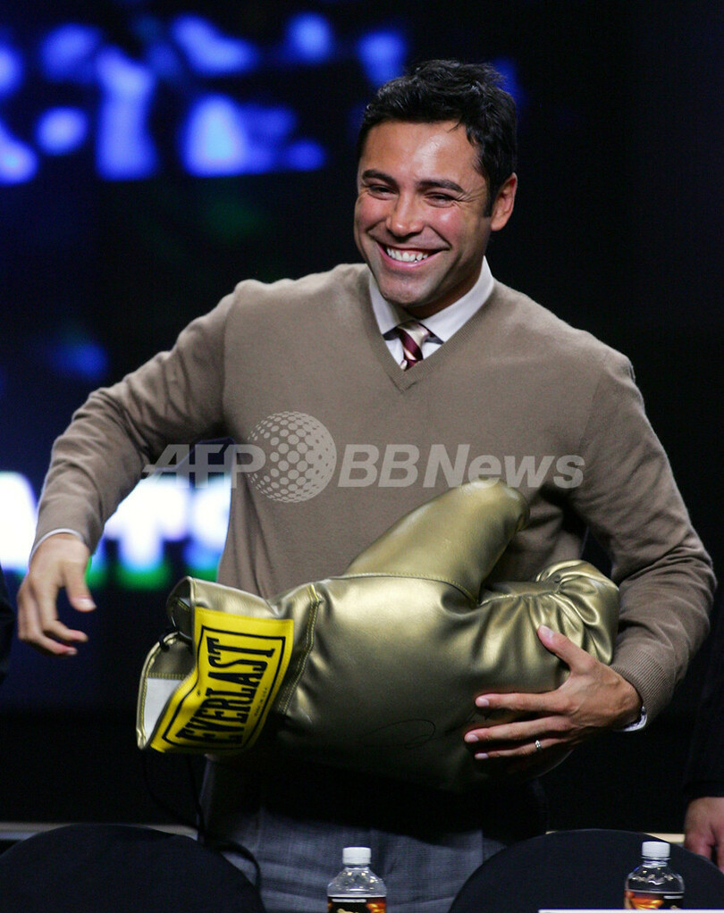 <ボクシング>デラホーヤ メイウェザー・ジュニアと共に会見を行う - 米国