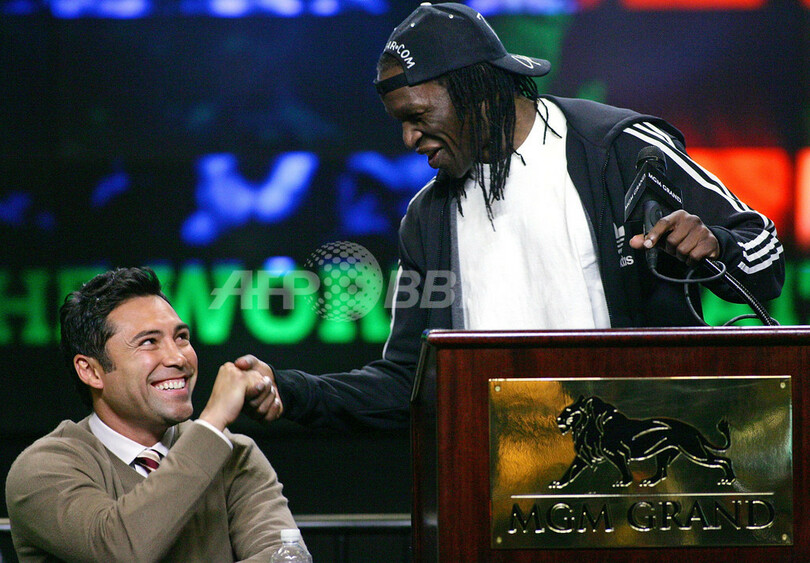<ボクシング>デラホーヤ メイウェザー・ジュニアと共に会見を行う - 米国