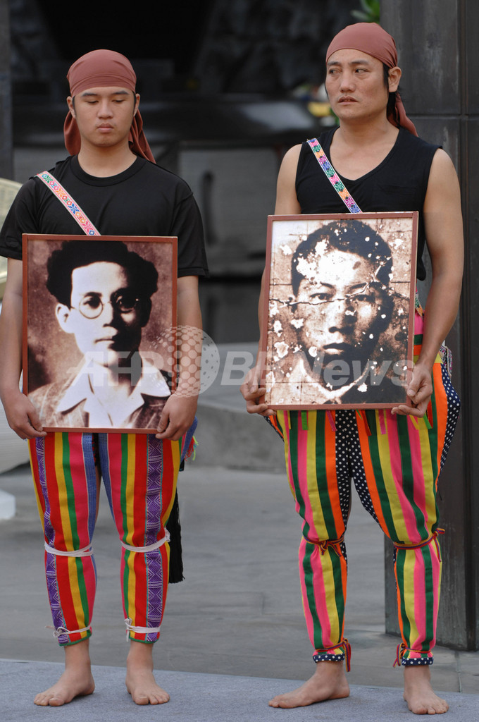 【台北/台湾 28日 AFP】1947年2月28日、台北(Taipei)市から台湾全土へ広がった中国国民党(当時)に対する抵抗運動と、これを鎮圧しようとした国民党軍による武力弾圧「二.二八事件」の発生から60周年を迎えた。この事件により、数万人が殺害されたといわれ、事件当時に布告された戒厳令は1987年まで解除されなかった。独立を志向する現台湾政府は、大虐殺の責任追及を求めている。写真は台北市の公園で28日、二.二八事件発生60周年を記念し、弾圧の犠牲となった台湾人の写真を掲げる人びと。(c)AFP/Sam YEH