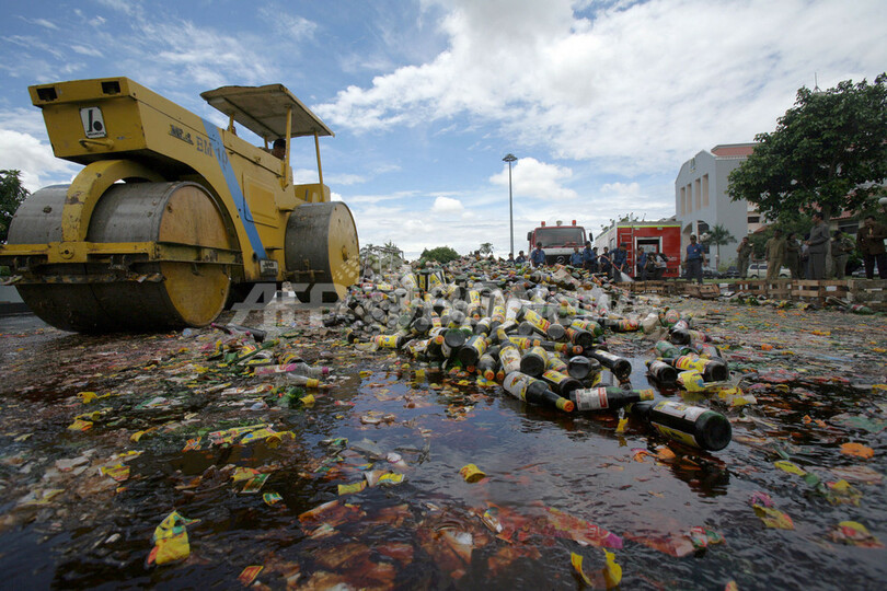 ニュース 社会 違法アルコール1万本分を処分 - インドネシア 2007年2月28日 18:48 発信地:インドネシア [ アジア・オセアニア インドネシア ] このニュースをシェア ‹ › ❮ 3/3 ❯ 写真は同日、蒸気ローラーでアルコール飲料を処分するタングランの職員。(c)AFP/ADEK BERRY 画像作成中 ! 【タングラン/インドネシア 28日 AFP】インドネシアのバンテン(Banteng)州タングラン(Tangerang)の自治体当局は28日、取り締まりで押収された違法輸入または違法製造アルコール飲料1万本を処分した。写真は同日、蒸気ローラーでアルコール飲料を処分するタングランの職員。(c)AFP/ADEK BERRY 社会 一覧へ> メディア・報道関係・法人の方向け 写真・動画 購入のお問合せ>