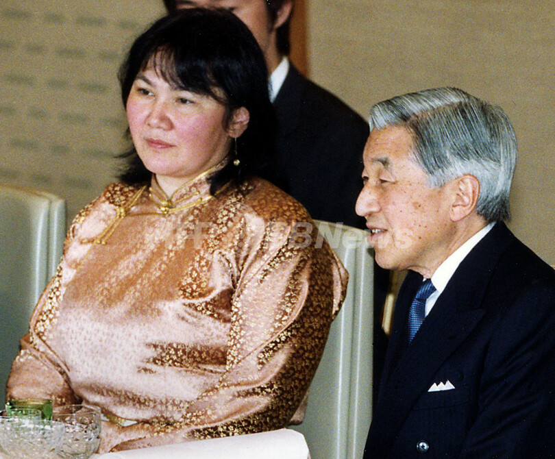 ニュース 政治・経済 モンゴル大統領夫妻が皇居を訪問 - 東京 2007年2月28日 19:24 発信地:東京 [ アジア・オセアニア 東京 ] このニュースをシェア ‹ › ❮ 2/3 ❯ 写真は同日、昼食会に出席される天皇陛下(右)と%%Onongin Tsolmon%%モンゴル大統領夫人(宮内庁提供)。(c) AFP/IMPERIAL HOUSEHOLD AGENCY 画像作成中 ! 【東京 28日 AFP】5日間の日程で来日中のナンバリン・エンフバヤル(Nambaryn Enkhbayar)モンゴル大統領夫妻が28日、皇居を訪問した。 写真は同日、会見に向かわれる天皇陛下(右)、皇后さま(左から2人目)、エンフバヤル大統領(右から2人目)、同大統領夫人(宮内庁提供)。(c)AFP/IMPERIAL HOUSEHOLD AGENCY 政治・経済 一覧へ> メディア・報道関係・法人の方向け 写真・動画 購入のお問合せ>