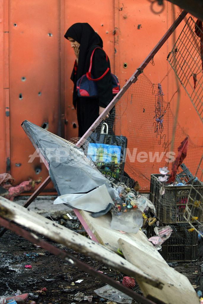 写真は同日、大破した市場を歩く女性。(c)AFP/ALI AL-SAADI