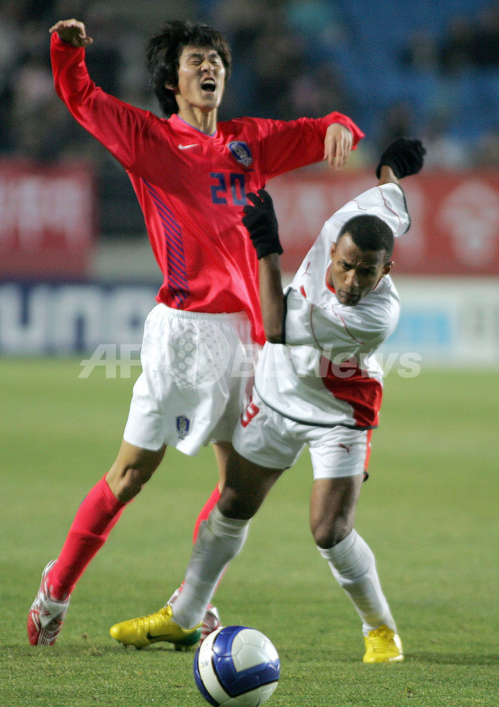 スポーツ サッカー <サッカー 北京五輪アジア2次予選>韓国 イエメンを降しグループリーグ初戦を白星で飾る - 韓国 2007年2月28日 23:33 発信地:韓国 [ 韓国・北朝鮮 韓国 ] このニュースをシェア ‹ › ❮ 2/3 ❯ <サッカー 北京五輪アジア2次予選>韓国 イエメンを降しグループリーグ初戦を白星で飾る - 韓国 画像作成中 ! 【ソウル/韓国 28日 AFP】サッカー、北京五輪アジア2次予選・グループF、韓国vsイエメン、第1戦。試合は韓国が1-0でイエメンに勝利し、グループリーグ初戦を白星で飾った。写真は、ボールをめぐりイエメンのRian Mohammed Ali Haiklと激しく交錯する韓国のパク・チュヨン(Park Chu Young、左)。(c)AFP/HOI WON-SUK サッカー 一覧へ> メディア・報道関係・法人の方向け 写真・動画 購入のお問合せ>