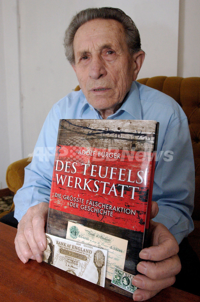 【プラハ/チェコ 1日 AFP】2月18日に閉幕を迎えた第57回ベルリン国際映画祭(The 57th Berlin International Film Festival、Berlinale)で公開された映画に、ステファン・ルツォヴィツキー(Stefan Ruzowitzky)監督作「Die Falscher(英題:The Counterfeiters)」がある。本作品で描かれているのは、第2次世界大戦中、ベルリン北部に実在した偽ポンド/ドル札製造のためのザクセンハウゼン強制収容所。当時、141人の収容者と共に、偽札製造を強いられたAdolf Burger氏の著書「Des Teufel Werkstatt」が原作になっている。写真は2月23日、当時製造されていた偽ポンド札をカメラに向ける現在89歳のBurger氏。(c)AFP/MICHAL CIZEK