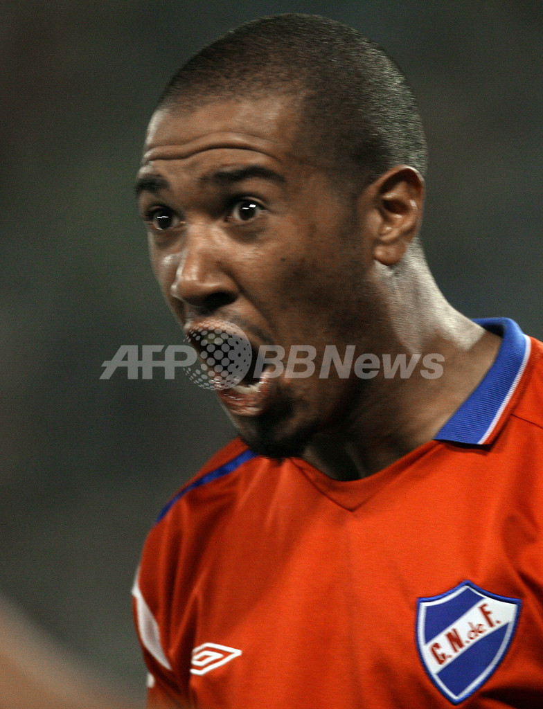 【ブエノスアイレス/アルゼンチン 28日 AFP】サッカー、リベルタドーレス杯南米選手権2007(Copa Libertadores de America 2007)・第2ラウンド、グループ4・第2節、ベレス・サルスフィエル(Velez Sarsfield、アルゼンチン)vsナシオナル・モンテビデオ(Nacional Montevideo、ウルグアイ)。試合は1-1の引き分けに終わった。写真は、ナシオナル・モンテビデオのマルセロ・ソサ(Marcelo Sosa、左)とボールを競るベレス・サルスフィエルのマクシミリアーノ・アンドレス・ブストス(Maximiliano Andres Bustos)。(c)AFP/DANIEL GARCIA