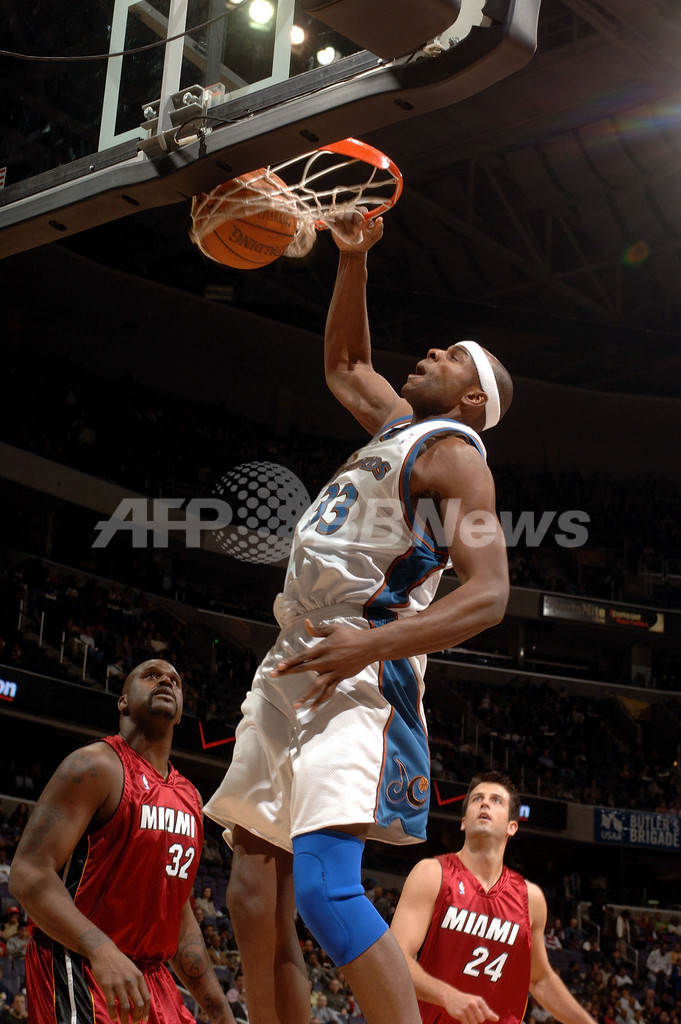 【ワシントンD.C/米国 28日 AFP】06-07NBA、ワシントン・ウィザーズ(Washington Wizards)vsマイアミ・ヒート(Miami Heat)。ヒートのジェームズ・ポージー(James Posey)はこの試合、ベンチからの出場で6得点6リバウンド2スティールの活躍でチームに貢献。試合は92-83でヒートが勝利し、今季28勝目を挙げた。(c)AFP/Getty Images/NBAE Mitchell Layton