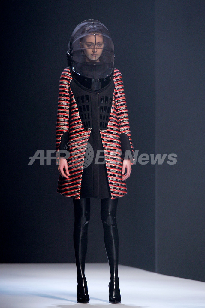 【パリ/フランス 1日 AFP】2月25日から3月4日までの8日間、フランス・パリ市内で07/08年秋冬コレクションが開かれている。4日目、フセイン・チャラヤン(Hussein Chalayan)が新作を発表した。写真は、新作を披露するモデル。(c)AFP/FRANCOIS GUILLOT
