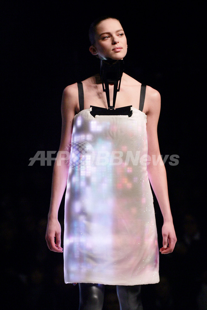 【パリ/フランス 1日 AFP】2月25日から3月4日までの8日間、フランス・パリ市内で07/08年秋冬コレクションが開かれている。4日目、フセイン・チャラヤン(Hussein Chalayan)が新作を発表した。写真は、新作を披露するモデル。(c)AFP/FRANCOIS GUILLOT