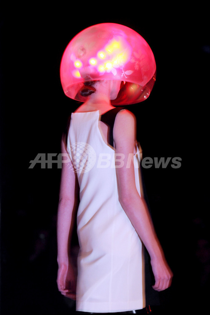 【パリ/フランス 1日 AFP】2月25日から3月4日までの8日間、フランス・パリ市内で07/08年秋冬コレクションが開かれている。4日目、フセイン・チャラヤン(Hussein Chalayan)が新作を発表した。写真は、新作を披露するモデル。(c)AFP/FRANCOIS GUILLOT