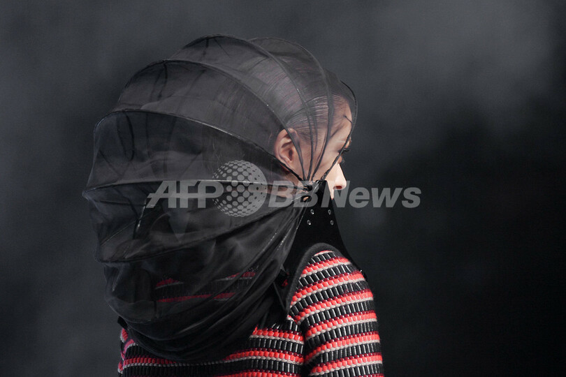 【パリ/フランス 1日 AFP】2月25日から3月4日までの8日間、フランス・パリ市内で07/08年秋冬コレクションが開かれている。4日目、フセイン・チャラヤン(Hussein Chalayan)が新作を発表した。写真は、新作を披露するモデル。(c)AFP/FRANCOIS GUILLOT