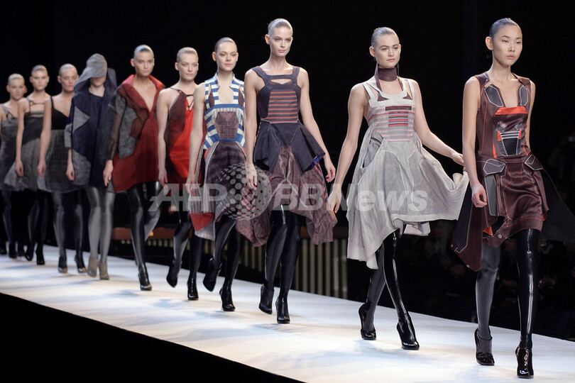 【パリ/フランス 1日 AFP】2月25日から3月4日までの8日間、フランス・パリ市内で07/08年秋冬コレクションが開かれている。4日目、フセイン・チャラヤン(Hussein Chalayan)が新作を発表した。写真は、新作を披露するモデル。(c)AFP/FRANCOIS GUILLOT