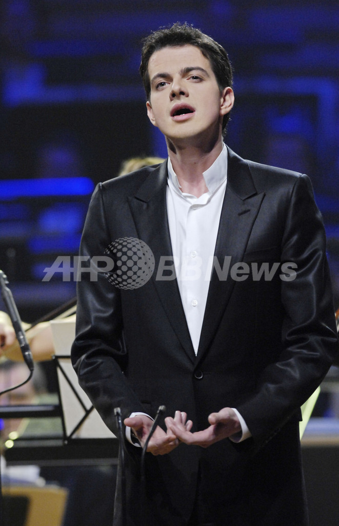 【パリ/フランス 4日 AFP】今年で14回目を迎えたフランスのクラシック音楽大賞、ヴィクトワール・ド・ラ・ミュジーク・クラシック(Les Victoires de la Musique Classique 2007)の授賞式が2月28日、コンサートホール、サル・プレイエル(Salle Pleyel)で開催され、フランス人カウンターテナー歌手のフィリップ・ジャルースキー(Philippe Jaroussky)が最優秀歌手賞(Best Lyric Artist of the Year)を受賞した。写真は、パフォーマンスを披露するジャルースキー。(c)AFP/STEPHANE DE SAKUTIN