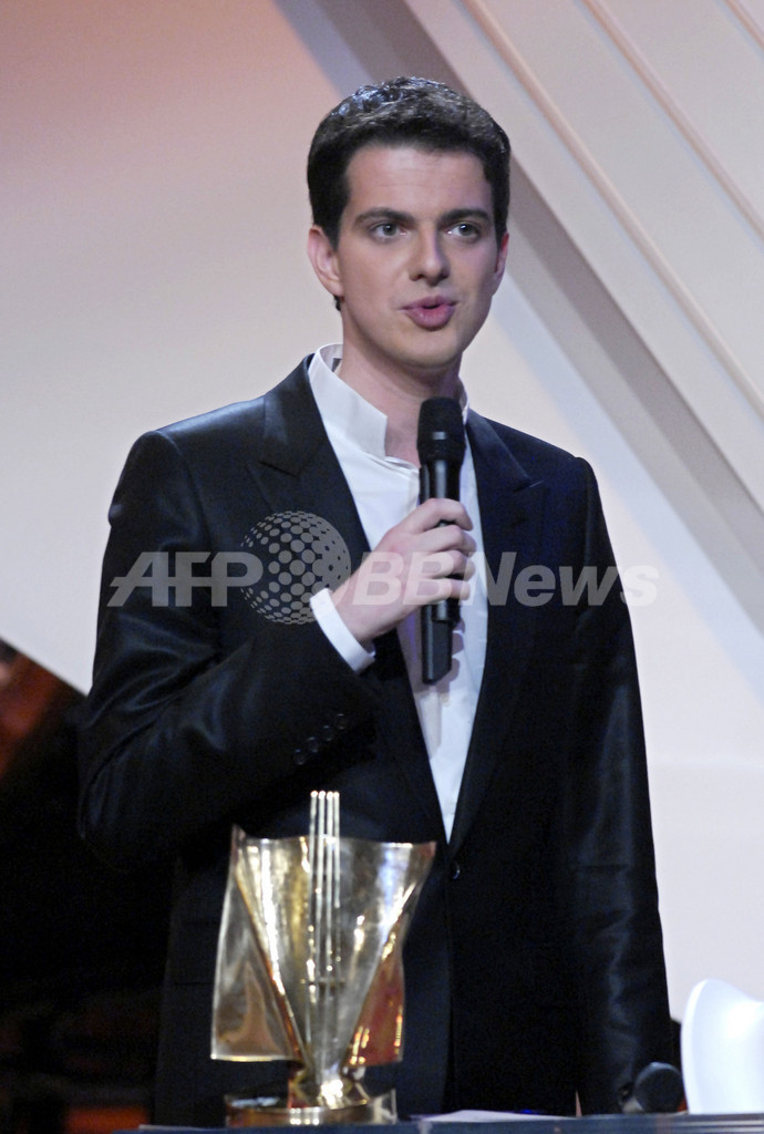 【パリ/フランス 4日 AFP】今年で14回目を迎えたフランスのクラシック音楽大賞、ヴィクトワール・ド・ラ・ミュジーク・クラシック(Les Victoires de la Musique Classique 2007)の授賞式が2月28日、コンサートホール、サル・プレイエル(Salle Pleyel)で開催され、フランス人カウンターテナー歌手のフィリップ・ジャルースキー(Philippe Jaroussky)が最優秀歌手賞(Best Lyric Artist of the Year)を受賞した。写真は、パフォーマンスを披露するジャルースキー。(c)AFP/STEPHANE DE SAKUTIN