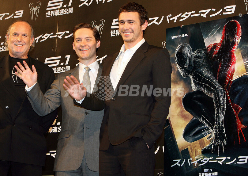 【東京 2日 AFP】話題作「スパイダーマン3(Spider-Man 3)」の日本公開を前に1日、都内のホテルで記者会見が行なわれ、主演のトビー・マグワイア(Tobey Maguire)らが登場した。会見では、本作のプレミアを世界に先駆け4月16日に日本で行い、続いて日本公開を、全世界で最も早い5月1日とすることが発表された。