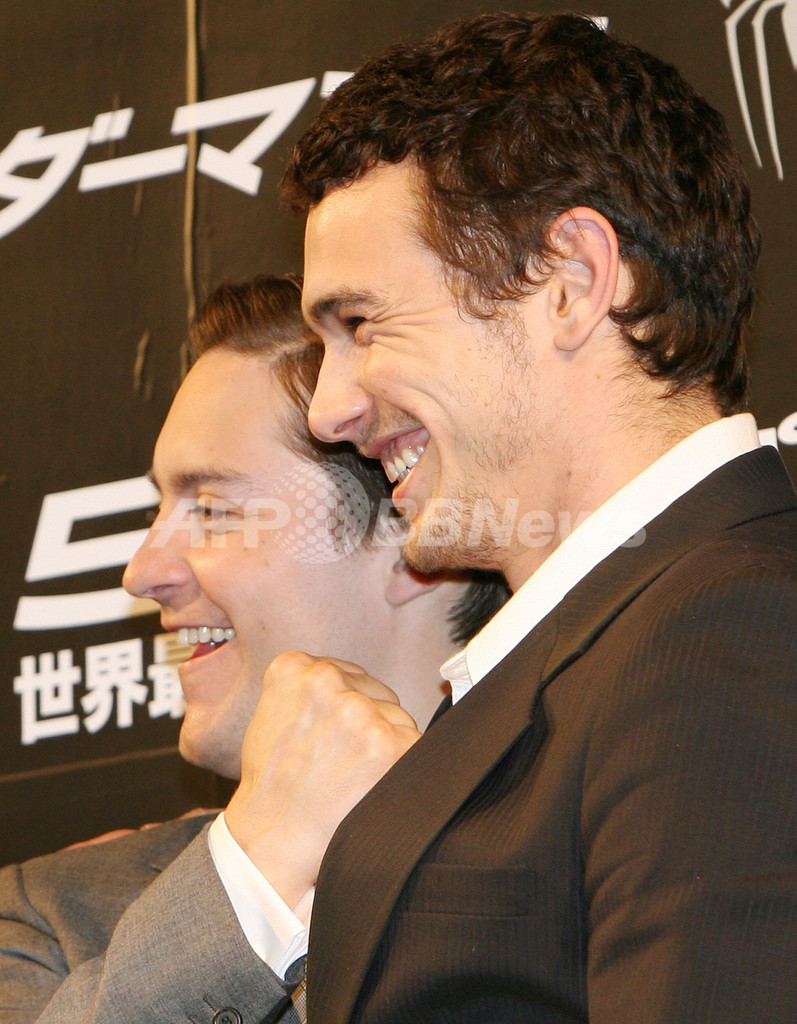 【東京 2日 AFP】話題作「スパイダーマン3(Spider-Man 3)」の日本公開を前に1日、都内のホテルで記者会見が行なわれ、主演のトビー・マグワイア(Tobey Maguire)らが登場した。会見では、本作のプレミアを世界に先駆け4月16日に日本で行い、続いて日本公開を、全世界で最も早い5月1日とすることが発表された。