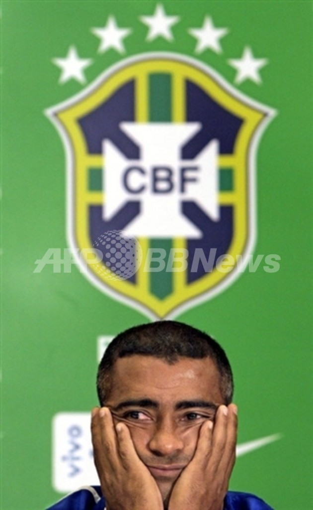 写真は、グアテマラとの親善試合を前に記者会見に臨むロマーリオ(2005年4月26日撮影)。(c)AFP/Mauricio LIMA