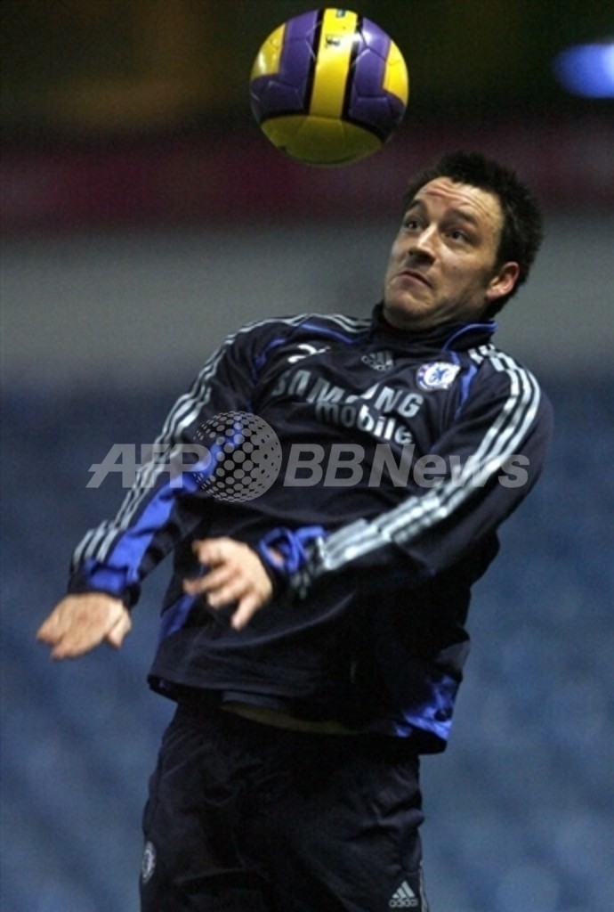 写真は、バーミンガムで行われたイングランド・プレミアリーグ第22節のアストン・ビラ(Aston Villa)戦を前に、練習に臨むジョン・テリー。(2007年1月2日撮影)(c)AFP/ANDREW YATES