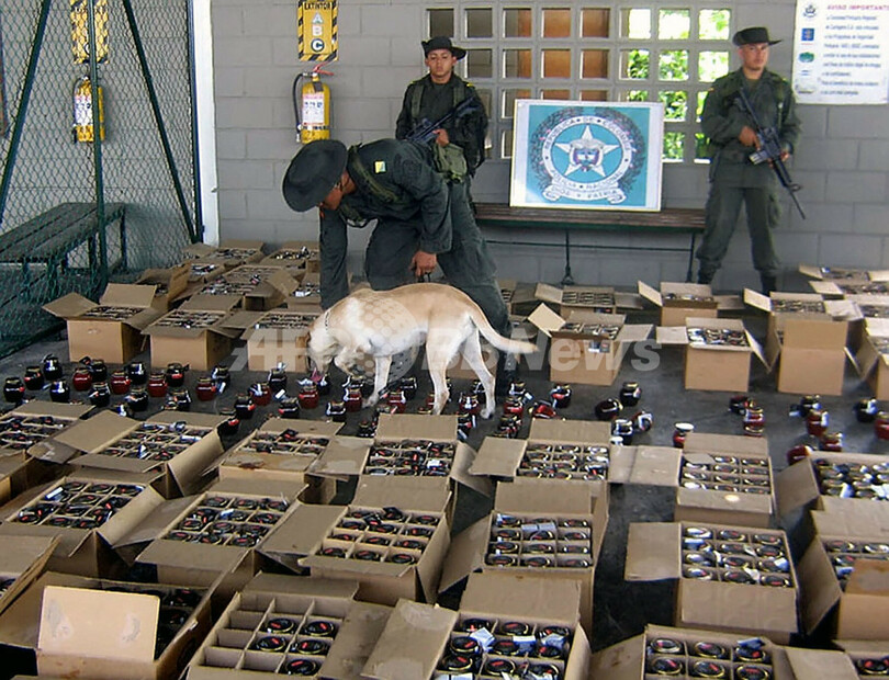 ニュース 社会 麻薬1トン、密輸出寸前に押収 - コロンビア 2007年3月5日 6:31 発信地:コロンビア [ 中南米 コロンビア ] このニュースをシェア 写真は4日、ボリバル(Bolivar)県のカルタヘナ(Cartagena)で、ジャムの瓶に詰められたコカインを捜索するコロンビアの警官と警察犬。(c)AFP 【カルタヘナ/コロンビア 5日 AFP】警察当局は4日、オランダに密輸されようとしていた麻薬約1トンを押収した。所有者についての情報は明らかになっていない。写真は4日、ボリバル(Bolivar)県のカルタヘナ(Cartagena)で、ジャムの瓶に詰められたコカインを捜索するコロンビアの警官と警察犬。(c)AFP 社会 一覧へ> メディア・報道関係・法人の方向け 写真・動画 購入のお問合せ>