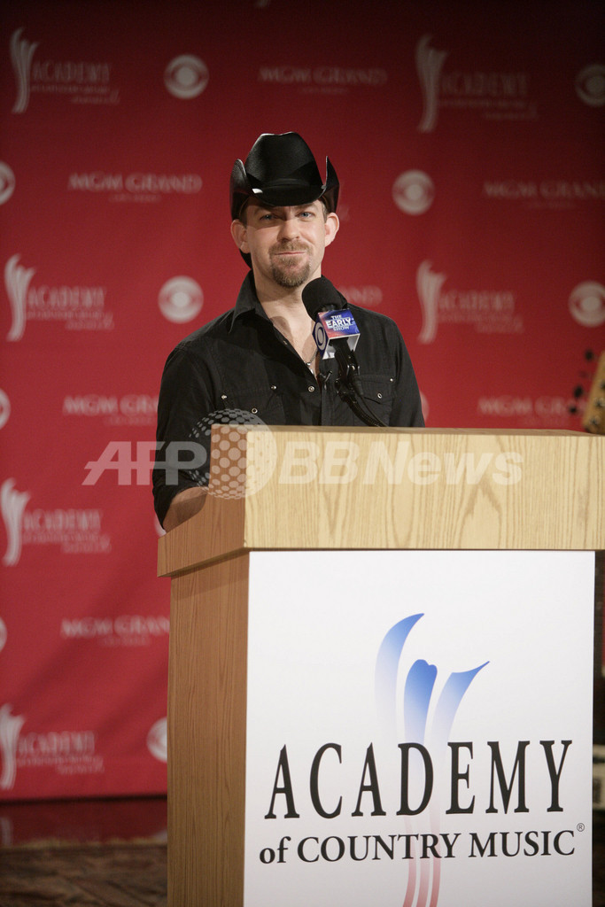 【テネシー/米国 6日 AFP】テレビ局CBSの朝のニュース番組「The Early Show」で5日、40年以上の伝統を持つカントリー音楽賞、第42回カントリー・ミュージック賞(The 42nd Academy of Country Music Awards)のノミネートが発表された。写真はノミネートを読み上げる番組司会者のハンナ・ストーム(Hannah Storm、左)とエンターテイナー賞(Entertainer of the Year Kenny)に2度輝いている歌手のケニー・チェスニー(Kenny Chesney)。(c)AFP/Getty Images Rusty Russell