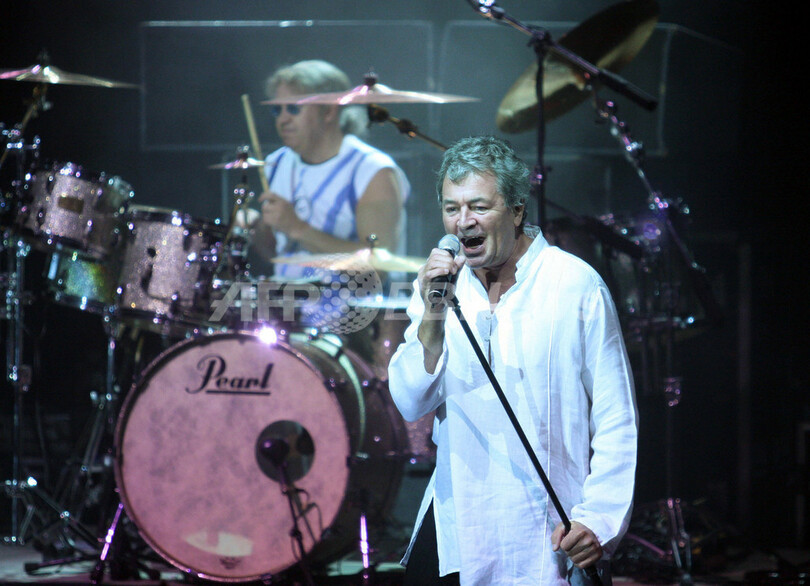 【ティラナ/アルバニア 6日 AFP】英国のハードロック・バンド、ディープ・パープル(Deep Purple)が4日、首都ティラナでコンサートを開催した。同バンドは現在、2005年にリリースされた18枚目のアルバム「Rapture of the Deep」のワールドツアーを行っており、この後ヨーロッパではフランス、英国、イタリア、スイス、デンマークなどを周る予定。写真はステージでパフォーマンスを披露するフロントマンのイアン・ギラン(Ian Gillan)とドラムのイアン・ペイス(Ian Paice)。(c)AFP/GENT SHKULLAKU