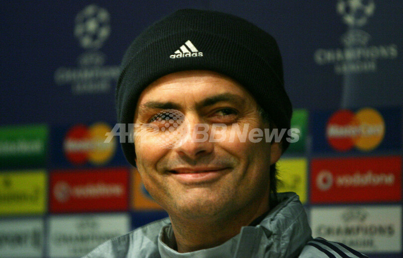 写真は、会見で笑顔を見せるモウリーニョ監督。(c)AFP/CHRIS YOUNG