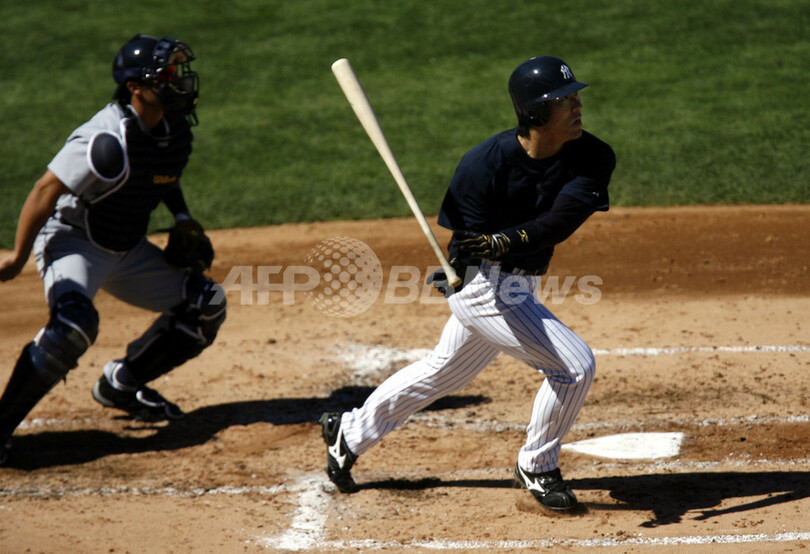 松井は2回にタイガース先発投手のジャスティン・バーランダー(Justin Verlander)からオープン戦第1号となる2点本塁打を放ち、3打数1安打2打点を記録した。試合は5-6でヤンキースが勝利を収めた。(c)AFP/Getty Images Eliot J. Schechter