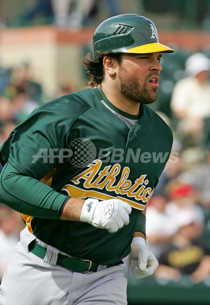 【テンピ/米国 5日 AFP】07MLB・オープン戦、ロサンゼルス・エンゼルス・オブ・アナハイム(Los Angeles Angels of Anaheim)vsオークランド・アスレチックス(Oakland Athletics)。アスレチックスのマイク・ピアザ(Mike Piazza)は、3打数ノーヒットに終わった。試合はアスレチックスが8-7でエンゼルスに勝利した。(c)AFP/Getty Images Lisa Blumenfeld