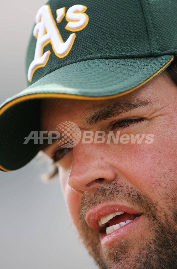【テンピ/米国 5日 AFP】07MLB・オープン戦、ロサンゼルス・エンゼルス・オブ・アナハイム(Los Angeles Angels of Anaheim)vsオークランド・アスレチックス(Oakland Athletics)。アスレチックスのマイク・ピアザ(Mike Piazza)は、3打数ノーヒットに終わった。試合はアスレチックスが8-7でエンゼルスに勝利した。(c)AFP/Getty Images Lisa Blumenfeld