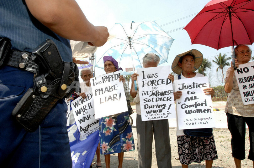 ニュース 政治・経済 「強制連行の証拠なし」、安倍首相発言に謝罪求めるデモ - フィリピン 2007年3月6日 19:41 発信地:フィリピン [ アジア・オセアニア フィリピン ] このニュースをシェア ‹ › ❮ 2/2 ❯ 写真は、デモに参加する元従軍慰安婦と主張する女性たち。(c)AFP/Jay DIRECTO 画像作成中 ! 【マニラ/フィリピン 6日 AFP】首都マニラ(Manila)の日本大使館前で6日、第ニ次世界大戦時の従軍慰安婦問題で「旧日本軍による強制連行の証拠はない」と発言した安倍晋三首相に対し、謝罪を求めるデモが実施された。写真は同日、デモに参加したJosefa Villiamorさん(88)。Villiamorさんは、元従軍慰安婦だったと主張する。(c)AFP/Jay DIRECTO 政治・経済 一覧へ> メディア・報道関係・法人の方向け 写真・動画 購入のお問合せ>