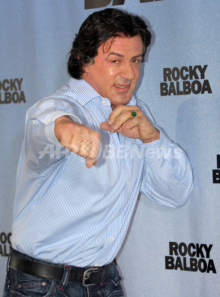 写真は同映画の宣伝のため、ケルンでのフォトコールに登場したスタローン(2007年1月11日撮影)。(c)AFP/DDP/HENNING KAISER